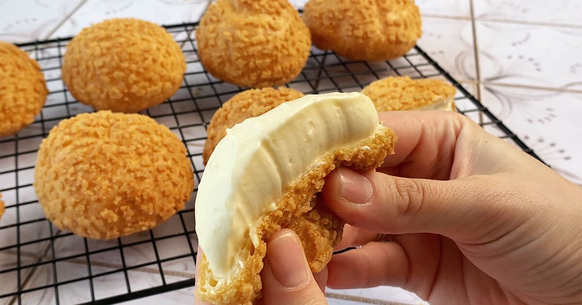 Su kem tròn là món bánh quen thuộc nhưng chưa bao giờ hết hot. Nhờ vỏ bánh mềm nhẹ và nhân kem mát lạnh, su kem mang lại cảm giác dễ chịu và không bị ngấy – phù hợp cho cả trẻ em lẫn người lớn.